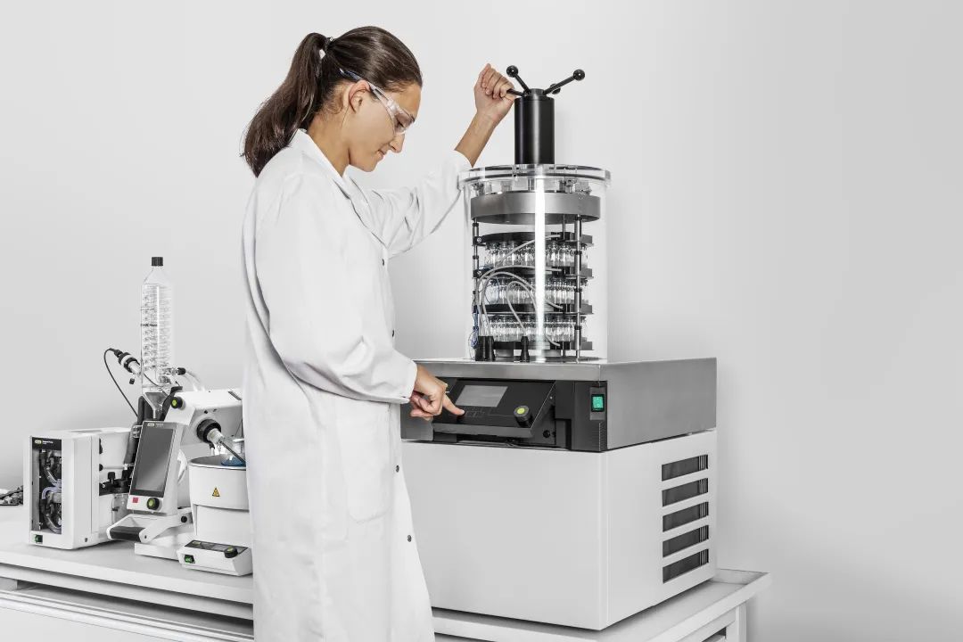 在冷凍干燥過程中,由于冰的升華,干燥室內(nèi)的氣體幾乎完全由水蒸氣組成。樣品干得越多,氣體成分的變化就越大。水蒸氣被氮?dú)饣蚩諝獯妫钡礁稍镞^程結(jié)束時(shí),室內(nèi)氣體只含有純氮?dú)饣蚩諝狻?/p>