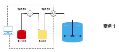 客戶要求Ni離子溶液的流量需要隨著時間線性遞減,而Mn離子溶液的流量需要隨著時間線性遞增。那么客戶可以選擇用兩臺智能泵,輸送Ni離子的泵用勻減速模塊,而Mn離子的泵用勻加速模塊。兩臺泵同時啟動,就可以制備出滿足要求的全濃度梯度結構的鋰電池材料。